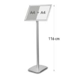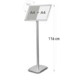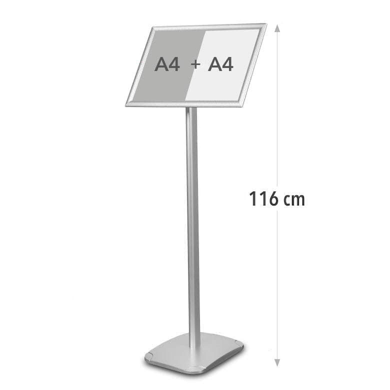 Elegantne infostend on mõeldud  restorani menüü, juhiste, infotahvlite jaoks. Klõpsraamil olevat plakatit on imelihtne vahetada. Stendi jalg on valmistatud terasest, tänu millele on see väga stabiilne ja sobib suurepäraselt õues kasutamiseks. Mõõtmed: 24 x 33cm Kõrgus: 132cm A2 suuruses on saadaval must ja hall jalaga infotahvel A3 suuruses on saadaval must ja hall jalaga infotahvel