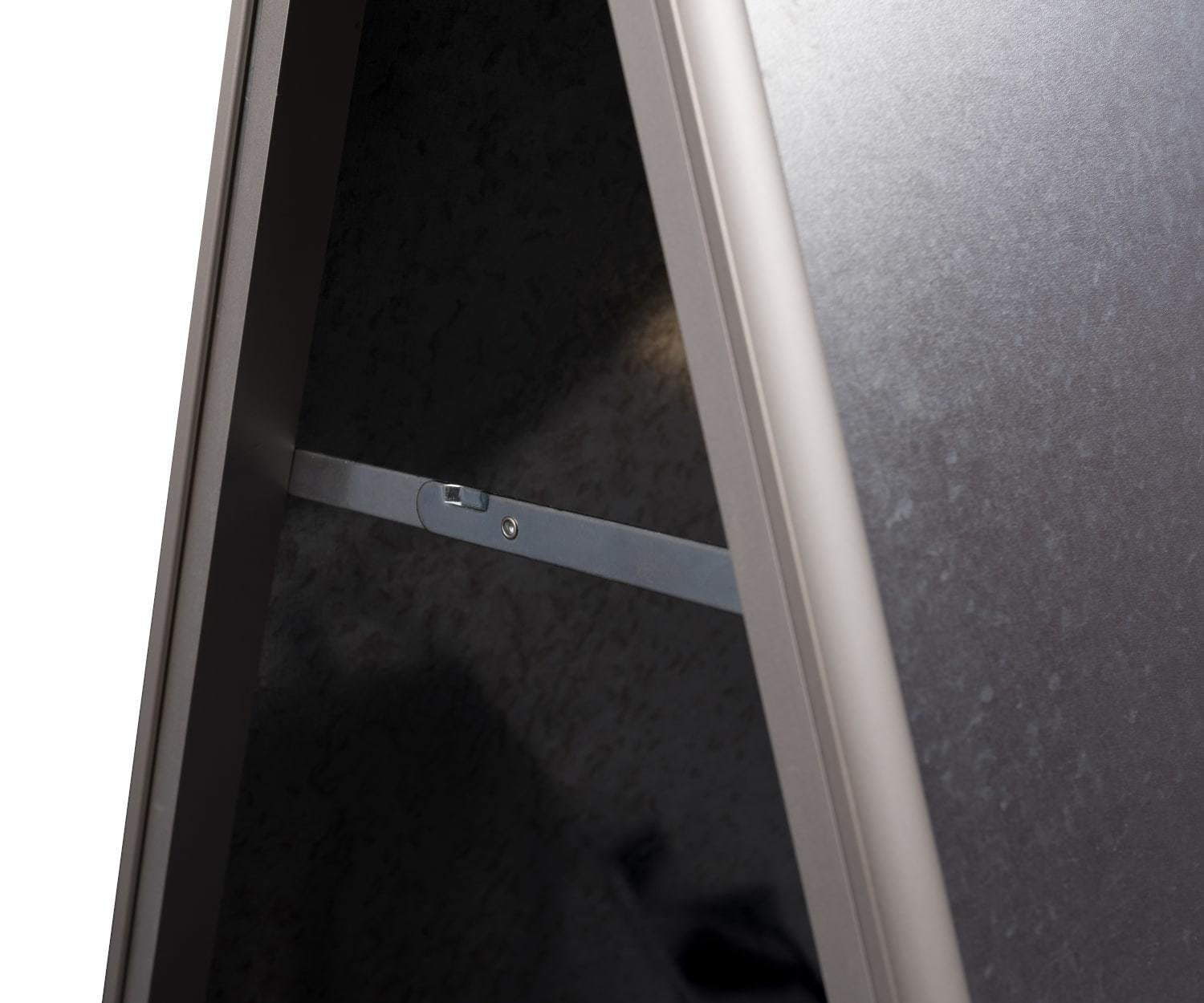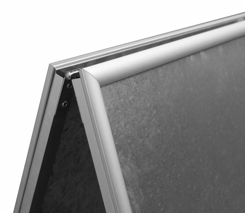 Erakordselt tugeva ja vastupidava süsteem reklaamatahvel, mis on valmistatud täielikult metallist ja tagakülg tsingitud terasplaadist. Tänu sellele saab märki kasutada õues, kuid väga tugeva tuule korral soovitame kasutada raskusega reklaamtahvlit. Plakatikate on UV-filtriga, mis kaitseb silti päikesevalguse ja tuhmuvate värvide eest ning plakatit on võimalik lihtsasti vaid mõne sekundiga vahetada. Kinnitusraam on valmistatud 32 mm anodeeritud alumiiniumprofiilist. A1 suurus: 594 x 841mm Kahepoolset reklaamtahvlit on saadaval: A0 hõbedane, A2 must, A1 must ja A1 hõbedane