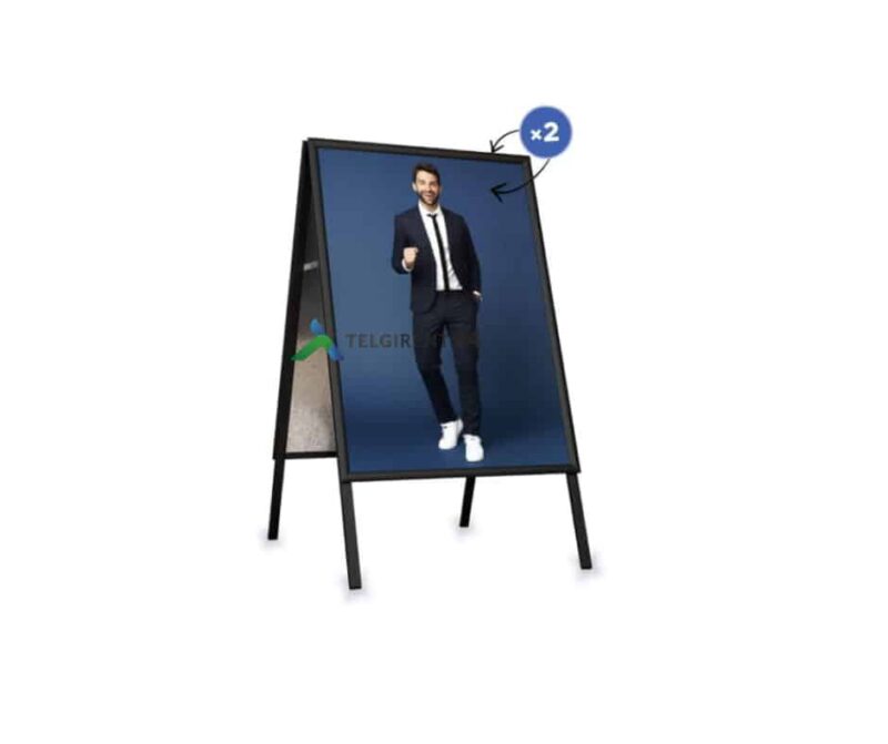 Erakordselt tugeva ja vastupidava süsteem reklaamatahvel, mis on valmistatud täielikult metallist ja tagakülg tsingitud terasplaadist. Tänu sellele saab märki kasutada õues, kuid väga tugeva tuule korral soovitame kasutada raskusega reklaamtahvlit. Plakatikate on UV-filtriga, mis kaitseb silti päikesevalguse ja tuhmuvate värvide eest ning plakatit on võimalik lihtsasti vaid mõne sekundiga vahetada. Kinnitusraam on valmistatud 32 mm anodeeritud alumiiniumprofiilist. A1 suurus: 594 x 841mm Kahepoolset reklaamtahvlit on saadaval: A0 hõbedane, A2 must, A1 must ja A1 hõbedane