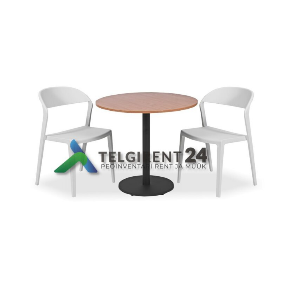 Elegantne kohvikumööbli komplekt — laud + toolid. Sobib terrassidele, kohvikutele ja üritustele.