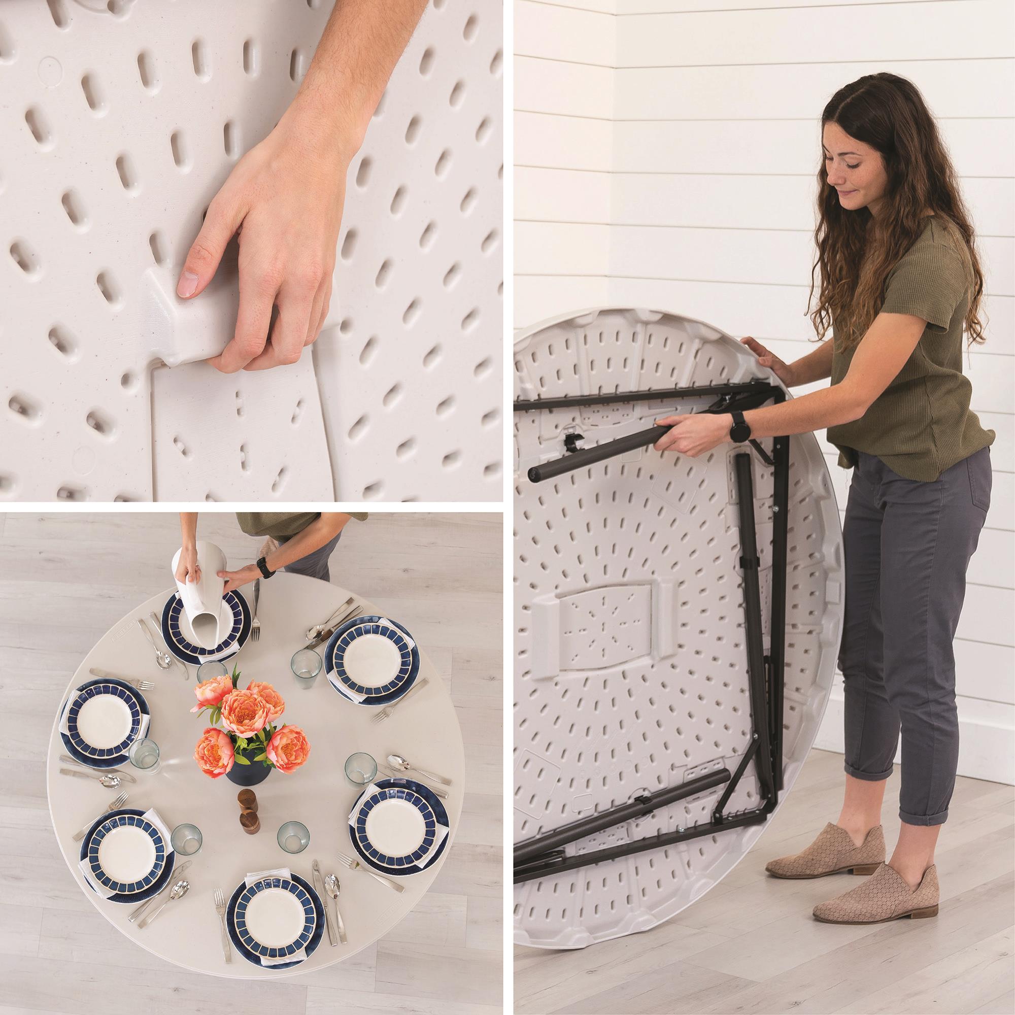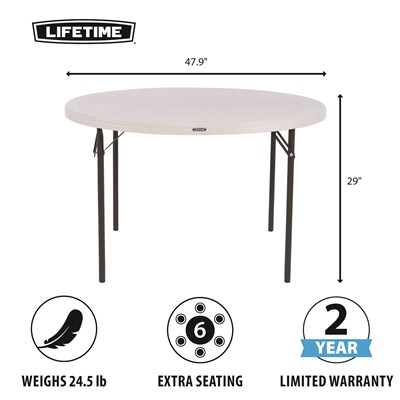 Lifetime 122 cm läbimõõduga ümmargune laud on tugev ja usaldusväärne valik nii sise- kui ka välistingimustesse. Kvaliteetne plastikust lauaplaat ning stabiilne metallraam tagavad kindla toe ja pika kasutusea ka intensiivsel kasutamisel.