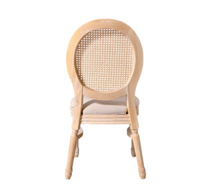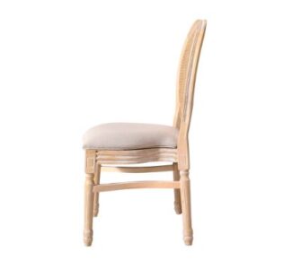 Täispuidust valmistatud tool pakub stabiilsust ja vastupidavust, mis on vajalikud intensiivseks kasutamiseks äripindadel. Rotangist seljatugi murrab peenelt klassikalist vormi, lisades kergust ja elegantsi. Polsterdatud iste tagab mugavuse isegi pikkade pidustuste ja vastuvõttude ajal.