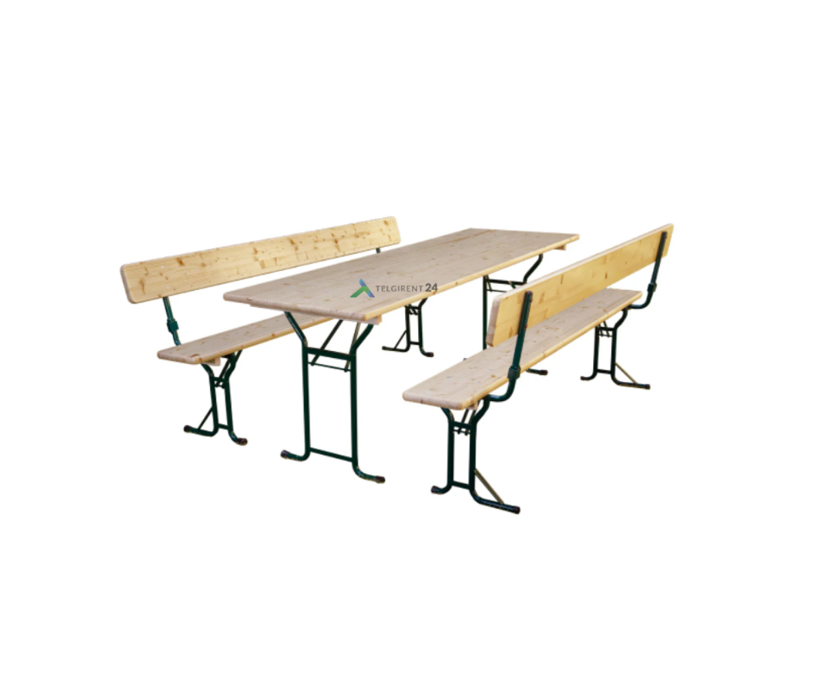 70cm seljatoega, mille laua mõõdud on 220 x 70 x 76cm ja pingi mõõdud: 220 x 25 x 46cm