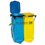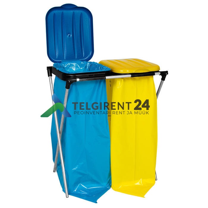 Kindel konstruktsioon Korrosiooni eest kaitstud tsingitud torud Sobib 120L prügikottidele Sobib kasutamiseks sise- ja välistingimustes Mõõdud: 62,5 x 38 x 74cm Konstruktsiooni torude läbimõõt: 16mm Kaal: 2,2kg Kaane värvid: kollane ja sinine – kahevärvilised kaaned võimaldavad jäätmete kiiret ja lihtsat eraldamist