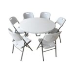 Praktiline ümmargune laud läbimõõduga 120 cm ja kõrgusega 74 cm mahutab mugavalt 6-8 inimest. Ideaalne valik, kui vajad kompaktset, kuid esinduslikku lauapinda. Olgu tegemist kohvikukeskkonna, väiksema koosviibimise, laste sünnipäeva või pop-up üritusega – see laud pakub lihtsat lahendust, mis sobitub erinevatesse ruumidesse ja olukordadesse.