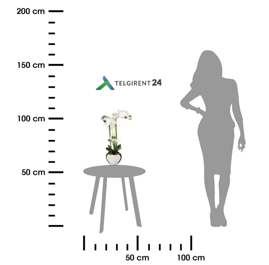Poti mõõdud: diameeter 15cm x kõrgus 11cm Taime kõrgus: 53cm Taime laius: 38cm Taime sügavus: 38cm Lisaks orhideele on valikus ka palmipuu ja bambuspuu.