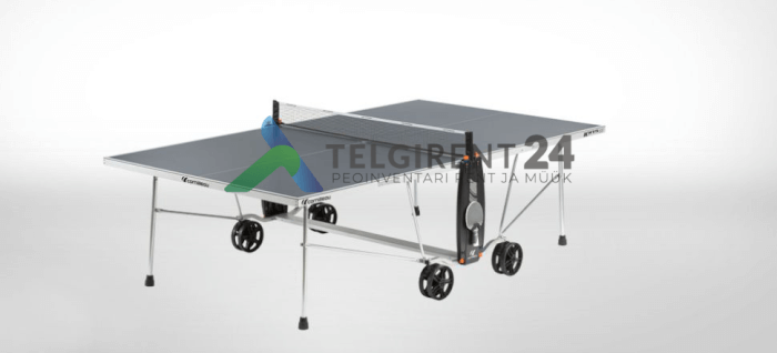 Lauatenniselaud ehk pingpongi laud on valmistatud Cornilleau poolt, kes on Euroopa suurim lauatennise laudade tootja. Laud on varustatud Push’N Lock süsteemiga, mis võimaldab lihtsalt lukustada ühte plaadipoolt ülesse tänu millena toimib laud vastumängijana, Laua mõlemal poolel on eraldi koht reketite hoidmiseks. Laual on neli suurt piduritega topeltratast, mis võimaldavad hõlpsasti lauda transportida ühest kohast teise, Jalad on valmistatud galvaniseeritud terasest ja on vastupidavad igale ilmale. Lisaks sellele on jalgade kõrguse reguleerimise võimalus, et fikseerida maaga hea toetuspind. Kompaktne – kokkuklapitav ja ratestel lükatav laud Komplektis on 2 reketit + 5 palli Mõõtmed mänguasendis: 275 x 153 x 77cm Mõõtmed kokkupandult: 155 x 161 x 75cm