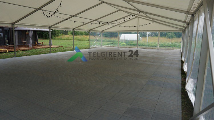 Millisele pinnasele peotelk tuleb – kas on vajalik telgile põrand paigaldada, valikus on plastikmoodulpõrand ja vineerpõrand.