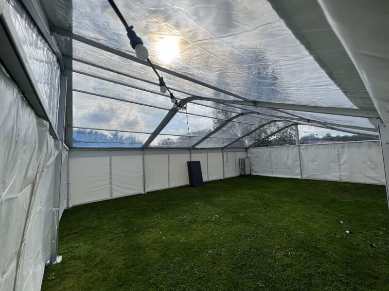 Läbipaistev katus loob valgusküllase ja ruumika olemise. Telgi saab kangastega dekoreerida täpselt teie soovide järgi.